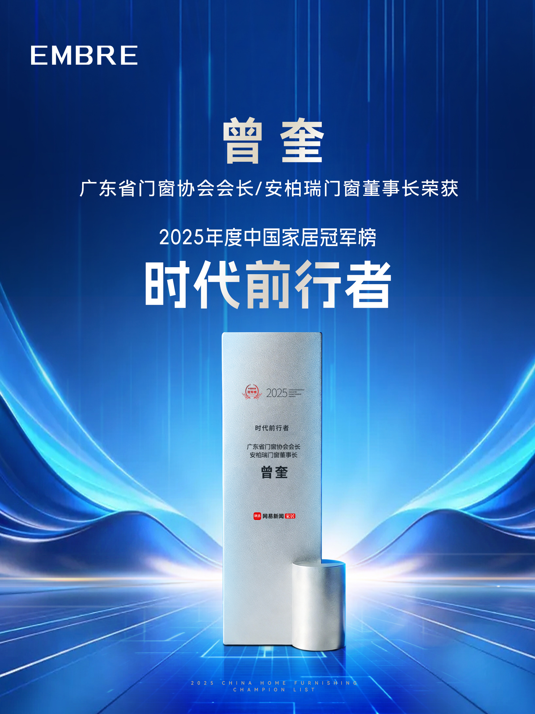 在本届评选中,安柏瑞门窗表现卓越,揽获三项殊荣:品牌荣获 “匠心质造品牌” ;广东省门窗协会会长、安柏瑞门窗董事长曾奎凭借其对行业发展的突出贡献,荣膺 “时代前行者” ;安柏瑞门窗总裁胡超则以卓越的领导力与战略视野,获评 “年度领军人物” 。